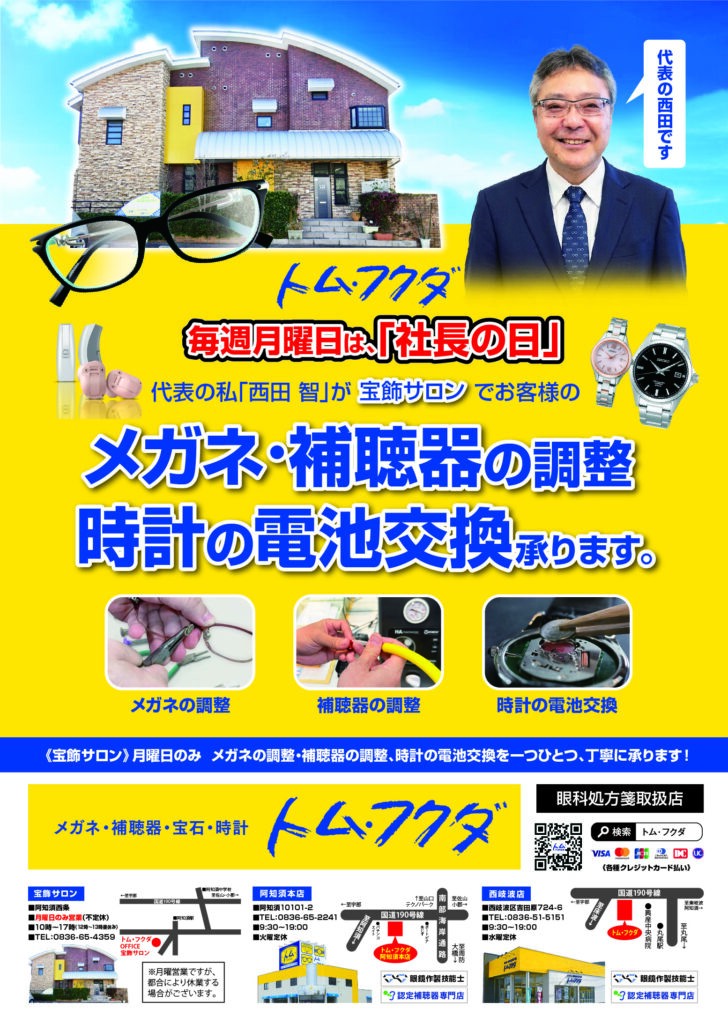 メガネ・補聴器・宝石・時計の専門店「トムフクダ」です。