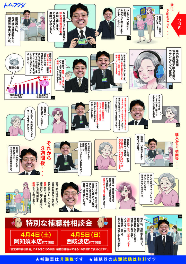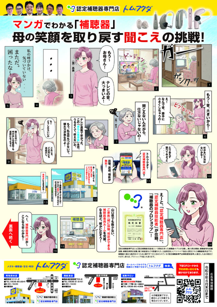 補聴器 補聴器相談会のお知らせ 2026.04.01 4月4日(土)と5日(日)に補聴器相談会を阿知須本店西岐波店で同時開催いたします。 補聴器の相談・点検・掃除をトム・フクダの認定補聴器技能者が承りますのでお気軽にご来店ください。 いつも応援ありがとうございます! ↓↓↓ ぽちっとお願いします!! にほんブログ村 投稿者: tom-fukuda補聴器補聴器, 認定補聴器専門店, 認定補聴器技能者コメント: 0 毎週月曜日は社長の日